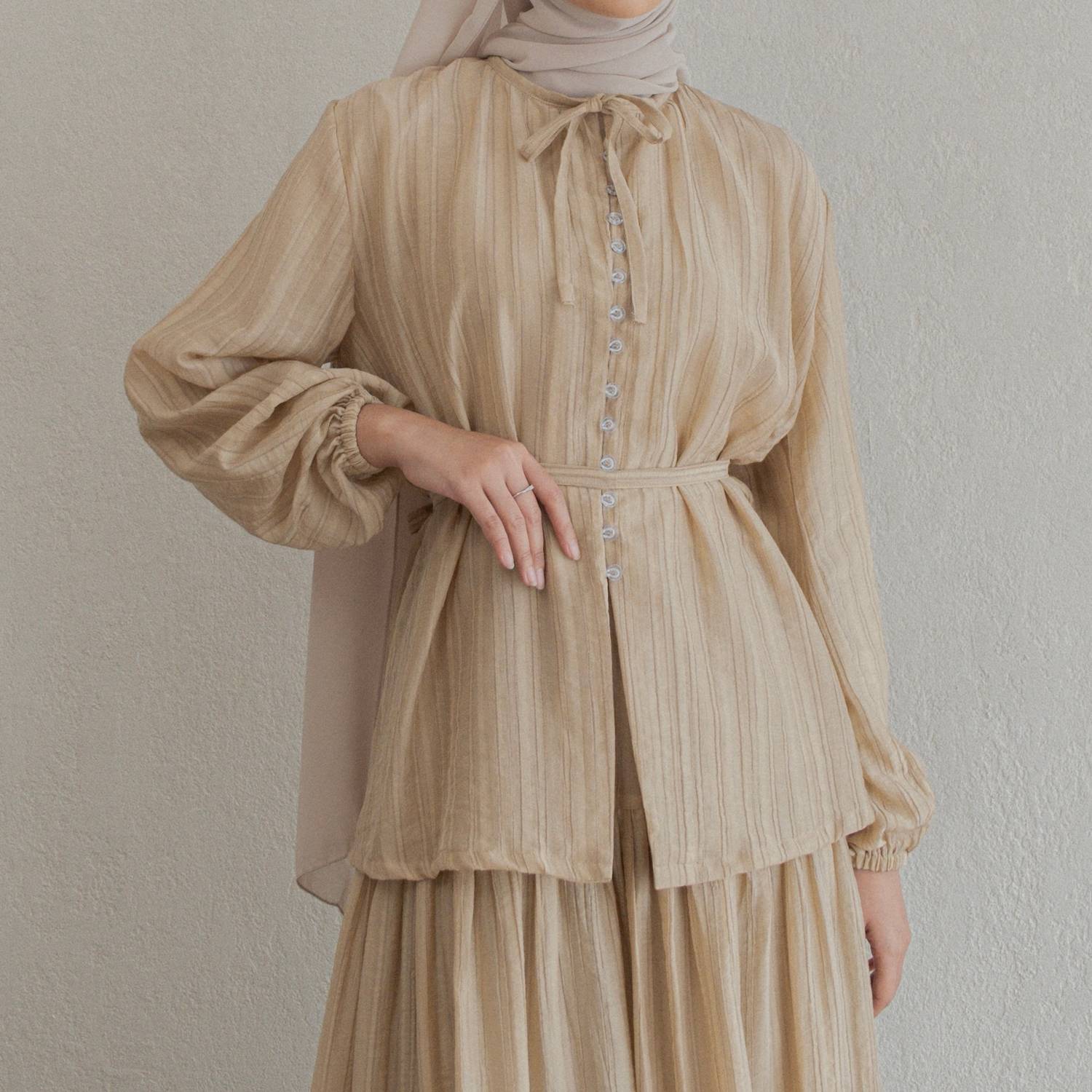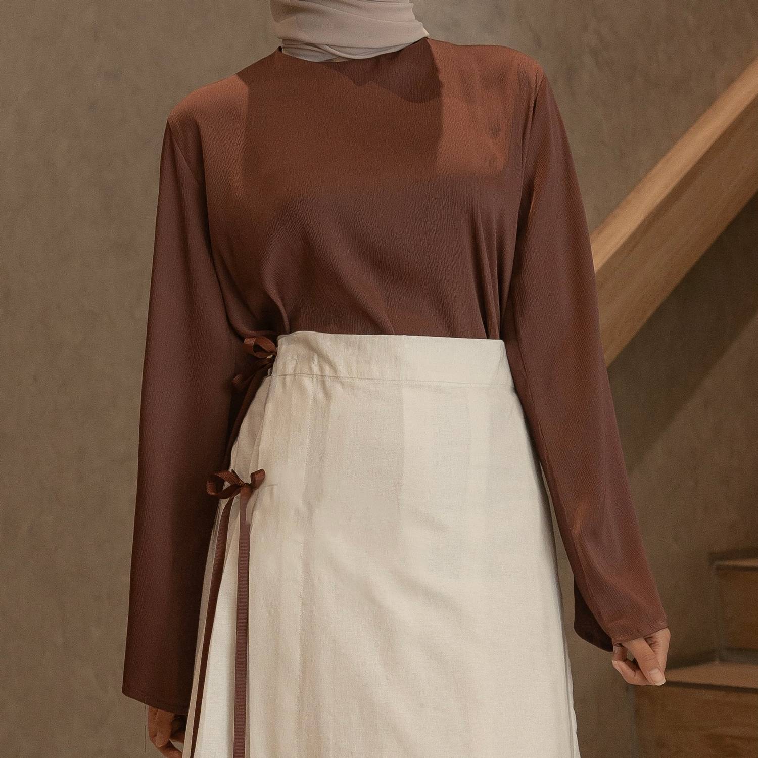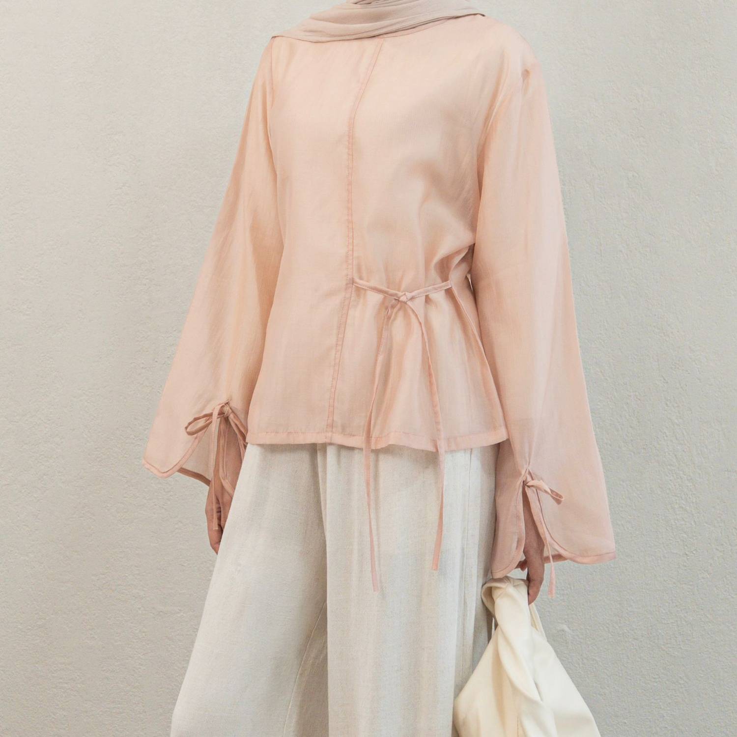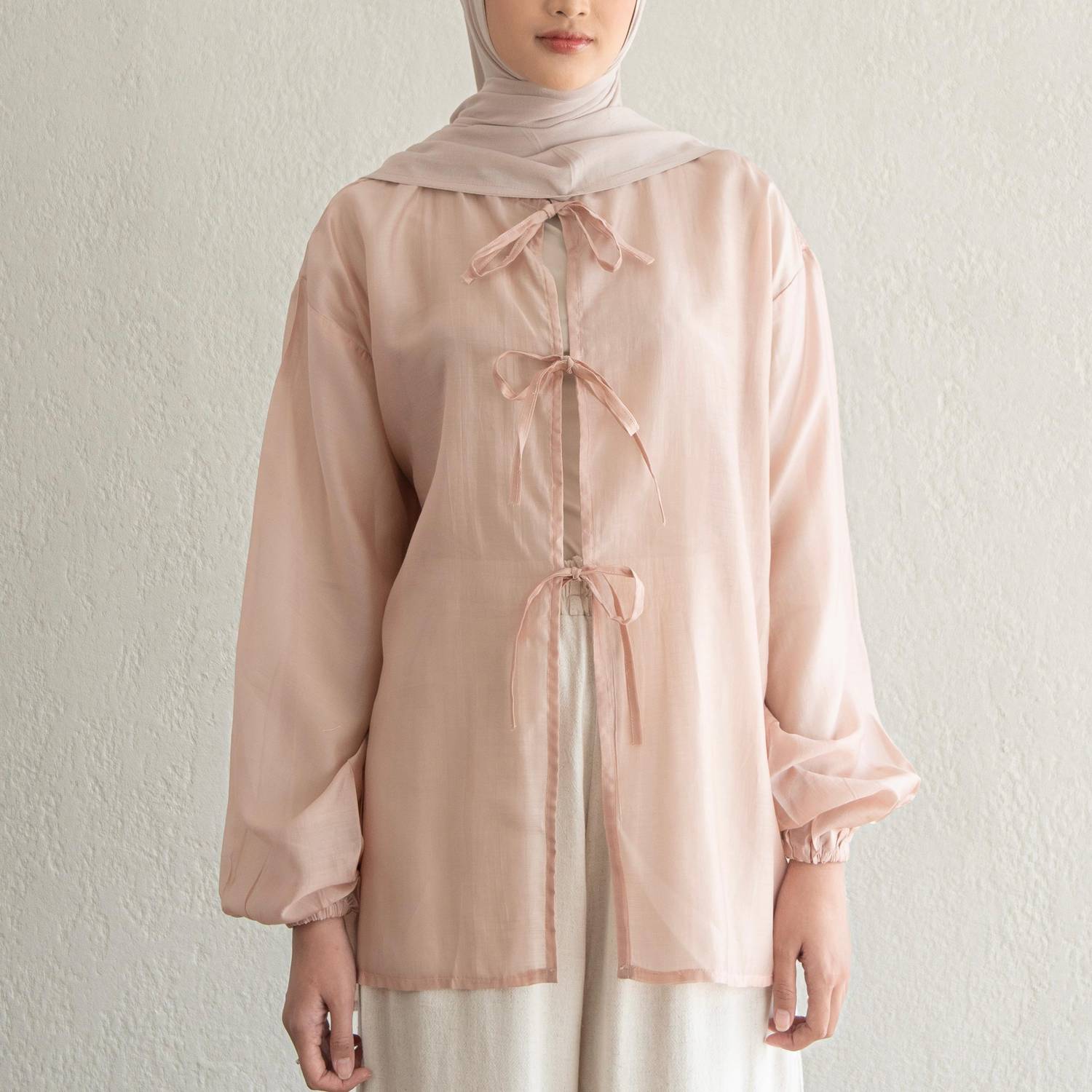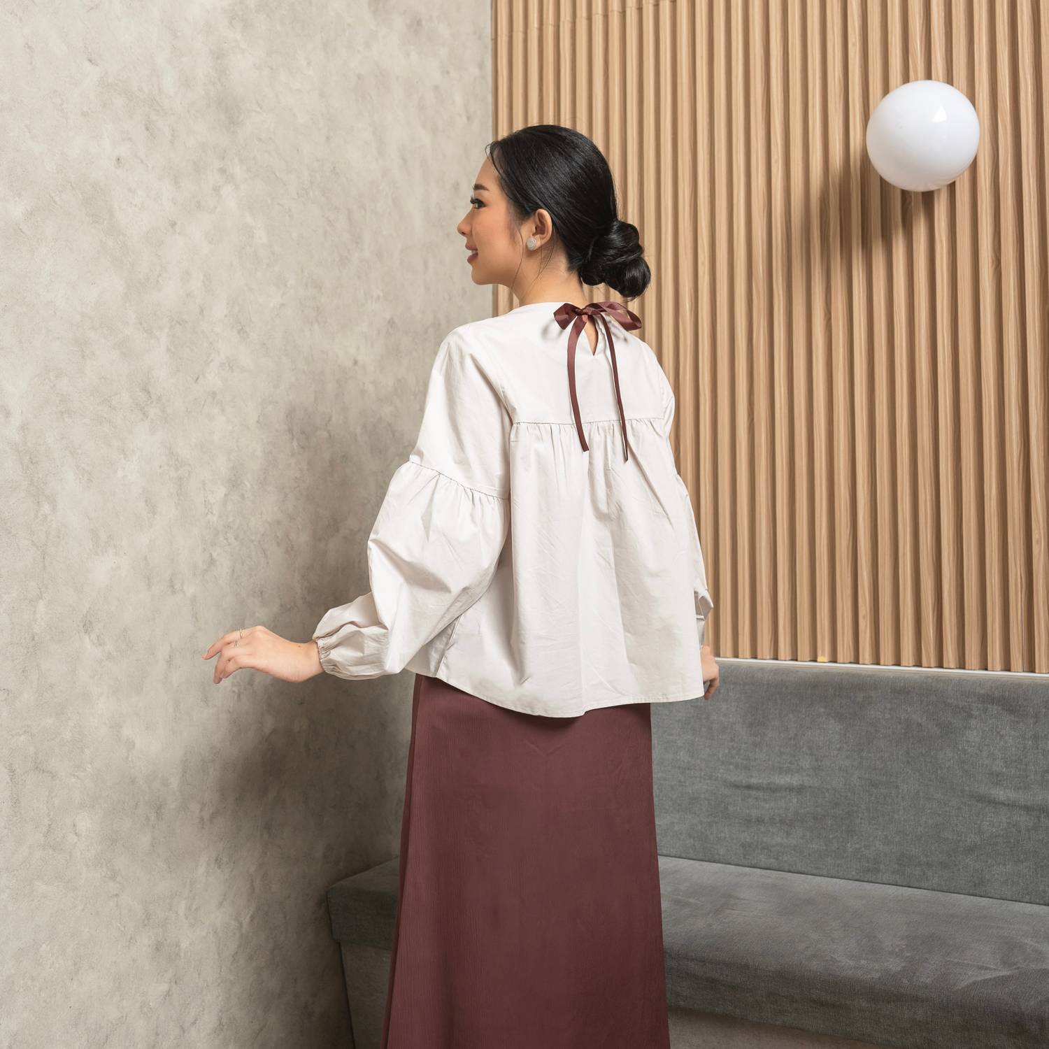 Fwdaily - Jeslyn Blouse (Ribbon Blouse- Midi Maxi Blouse- Korean Blouse- Atasan Wanita Premium- Blouse Pita Wanita)