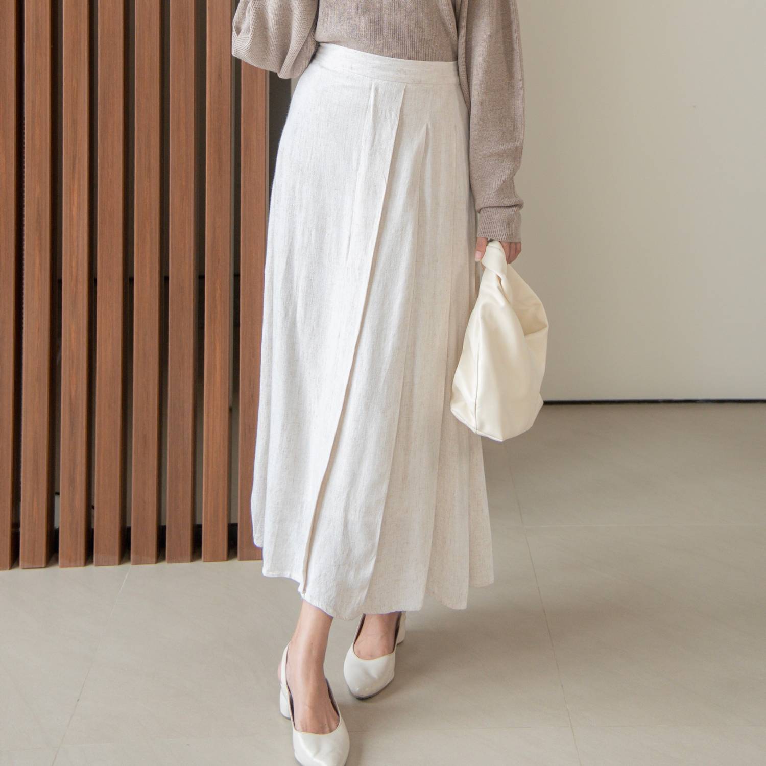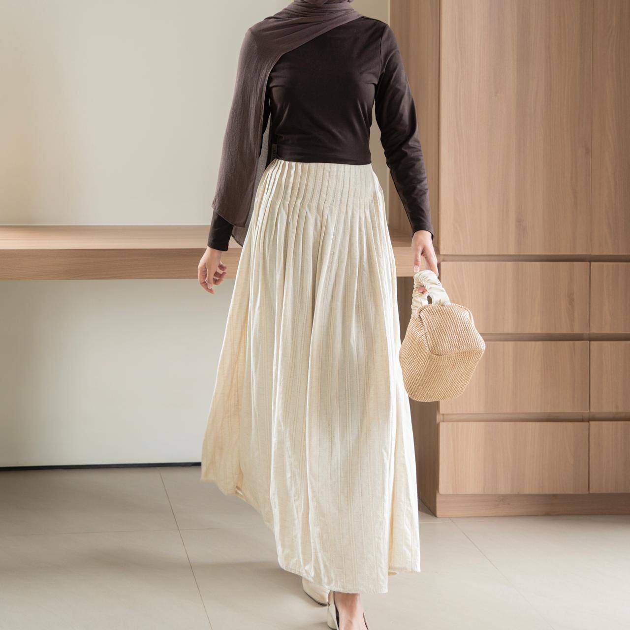 Fwdaily- Kirei Flowly Linen (Rok Lipit Polos- Korean Skirt Wanita- Skirt Midi Maxi Premium)
