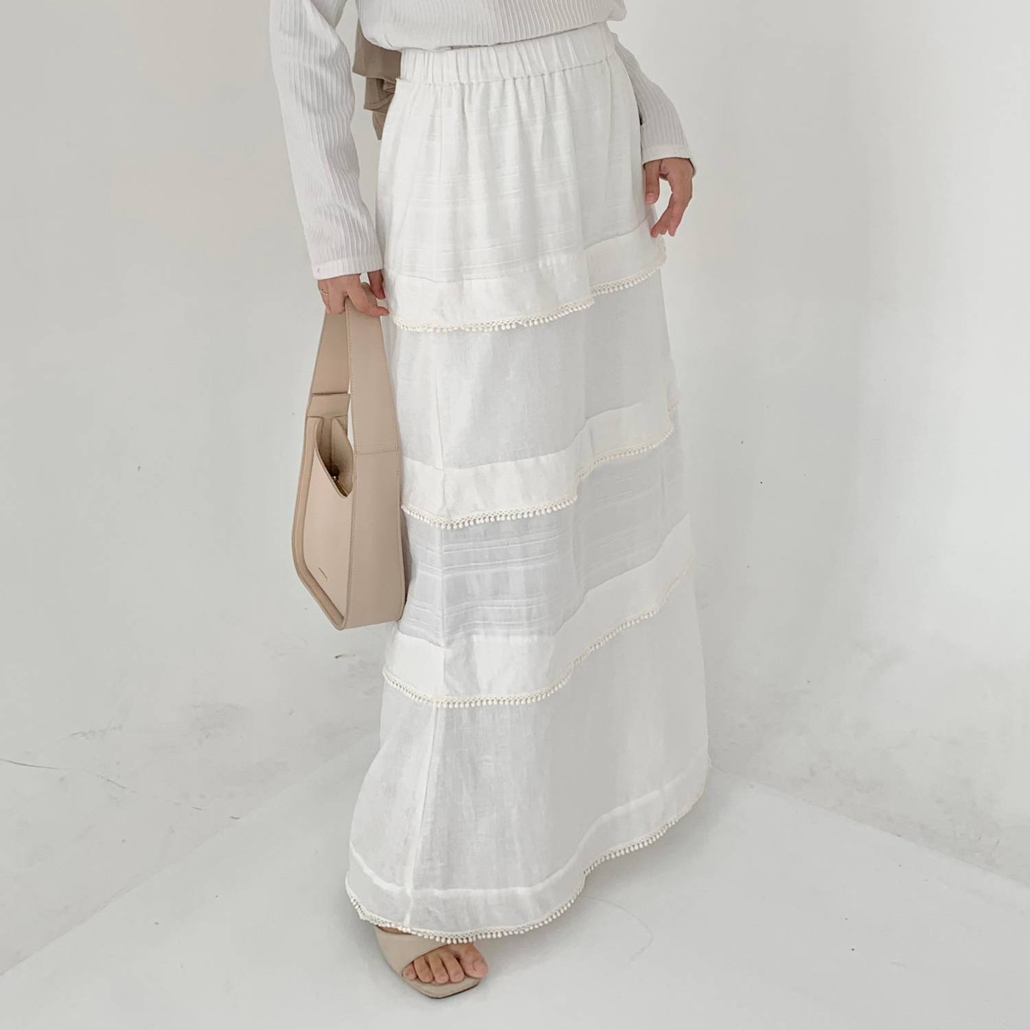 Fwdaily - Jane Ribbon Skirt (Skirt Rempel Layer Pita-Cuteness Skirt Ribbon- Midi Maxi Skirt- Korean Skirt-Rok Wanita Premium)