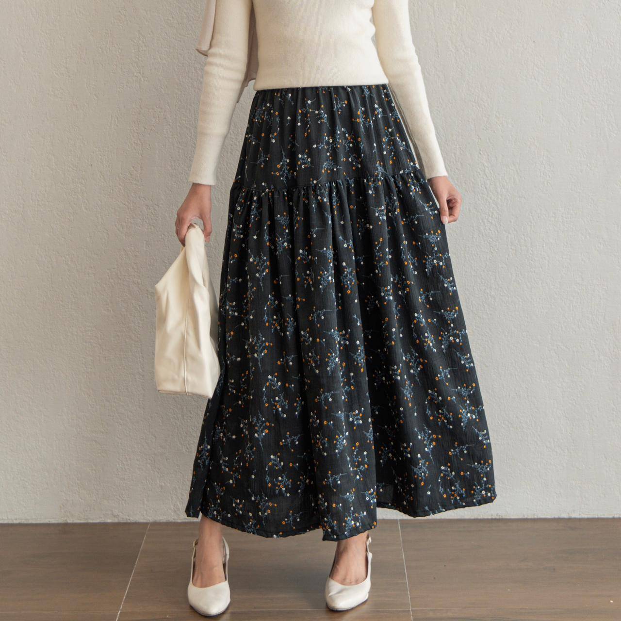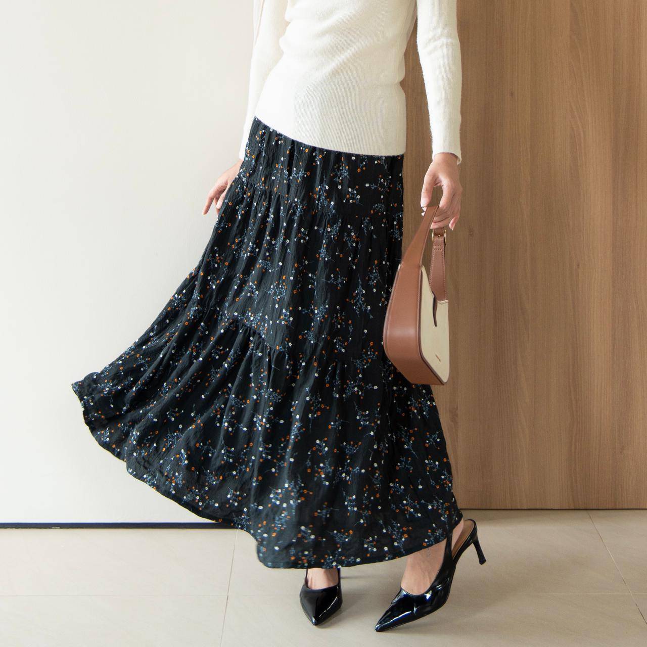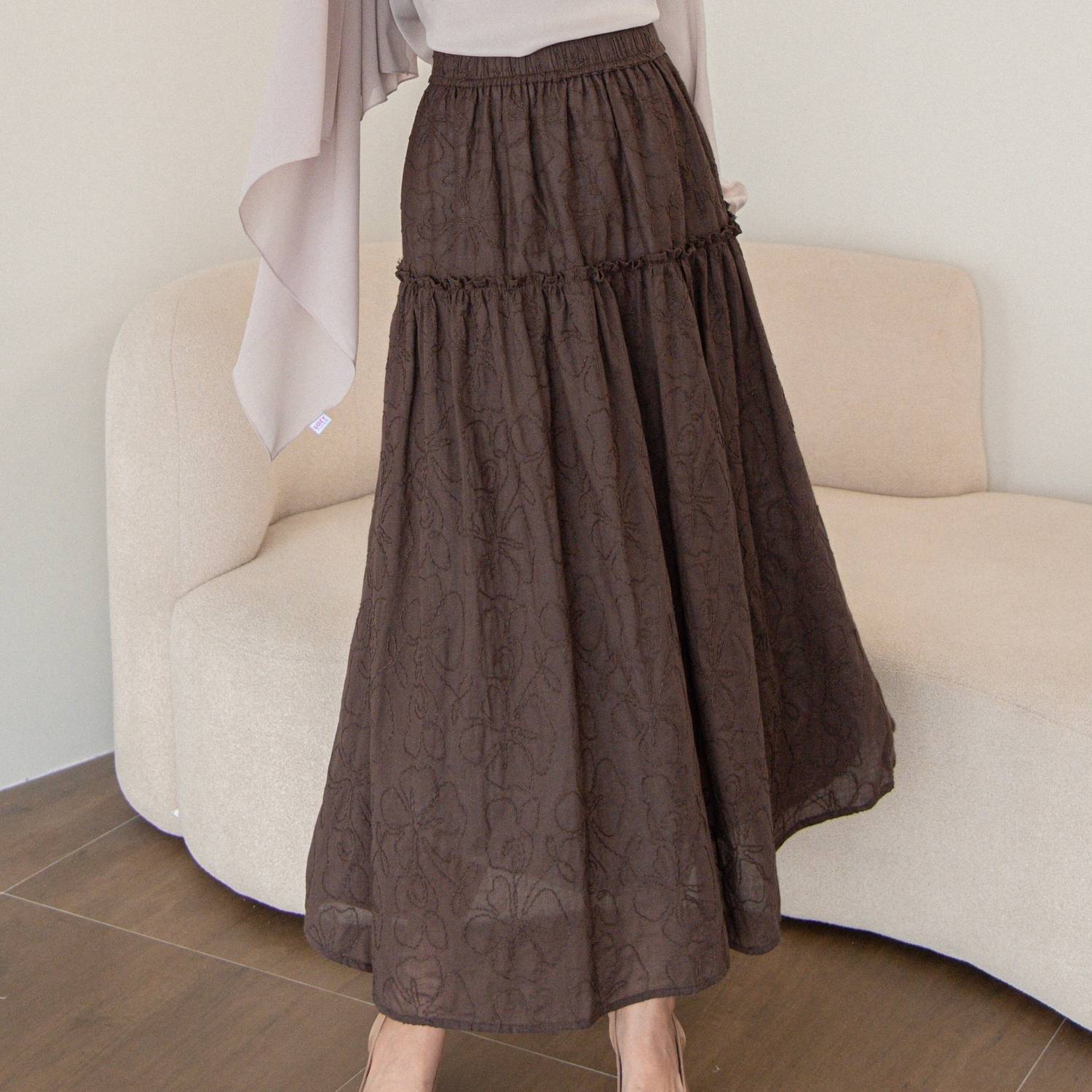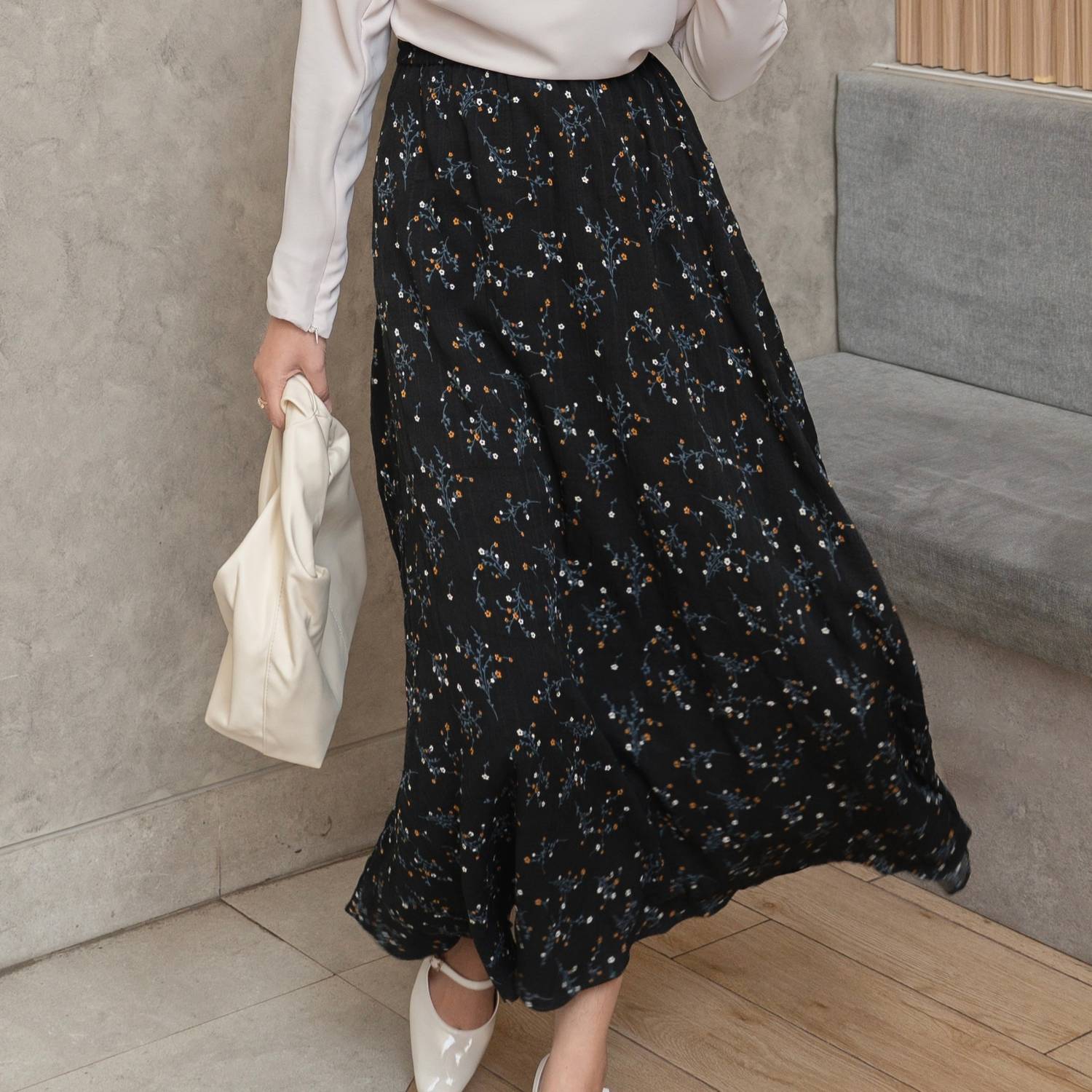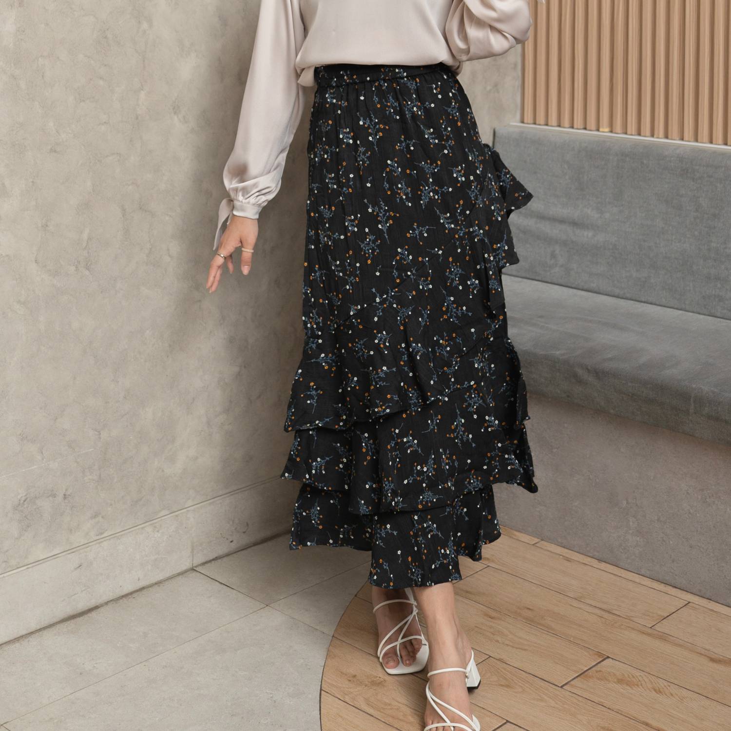 Fwdaily - Sierra Skirt (Rok Motif Cringkle - Korean Skirt Maxi - Floral Skirt - Muslim)