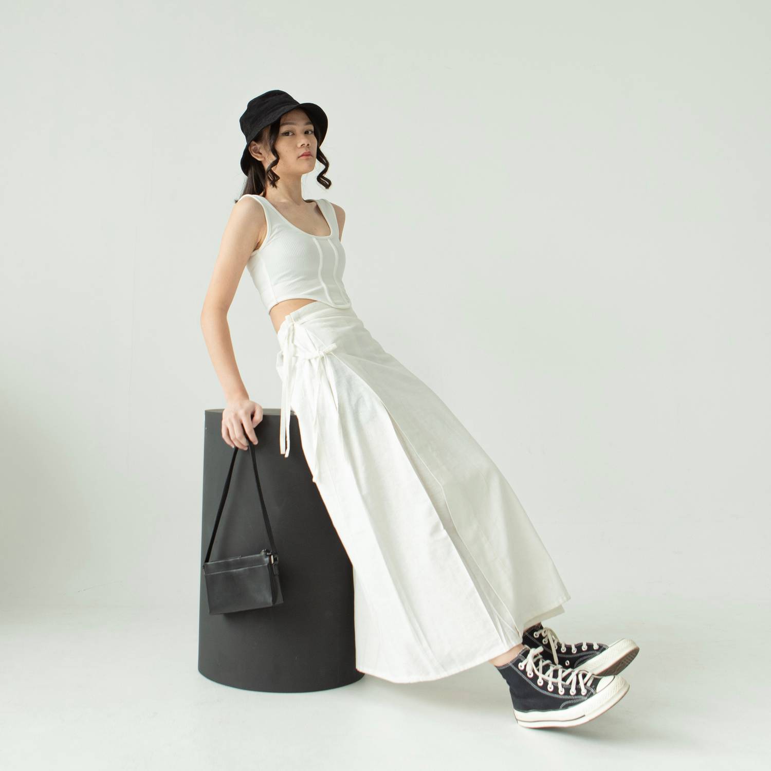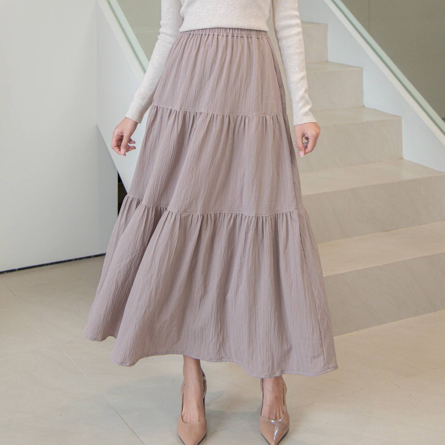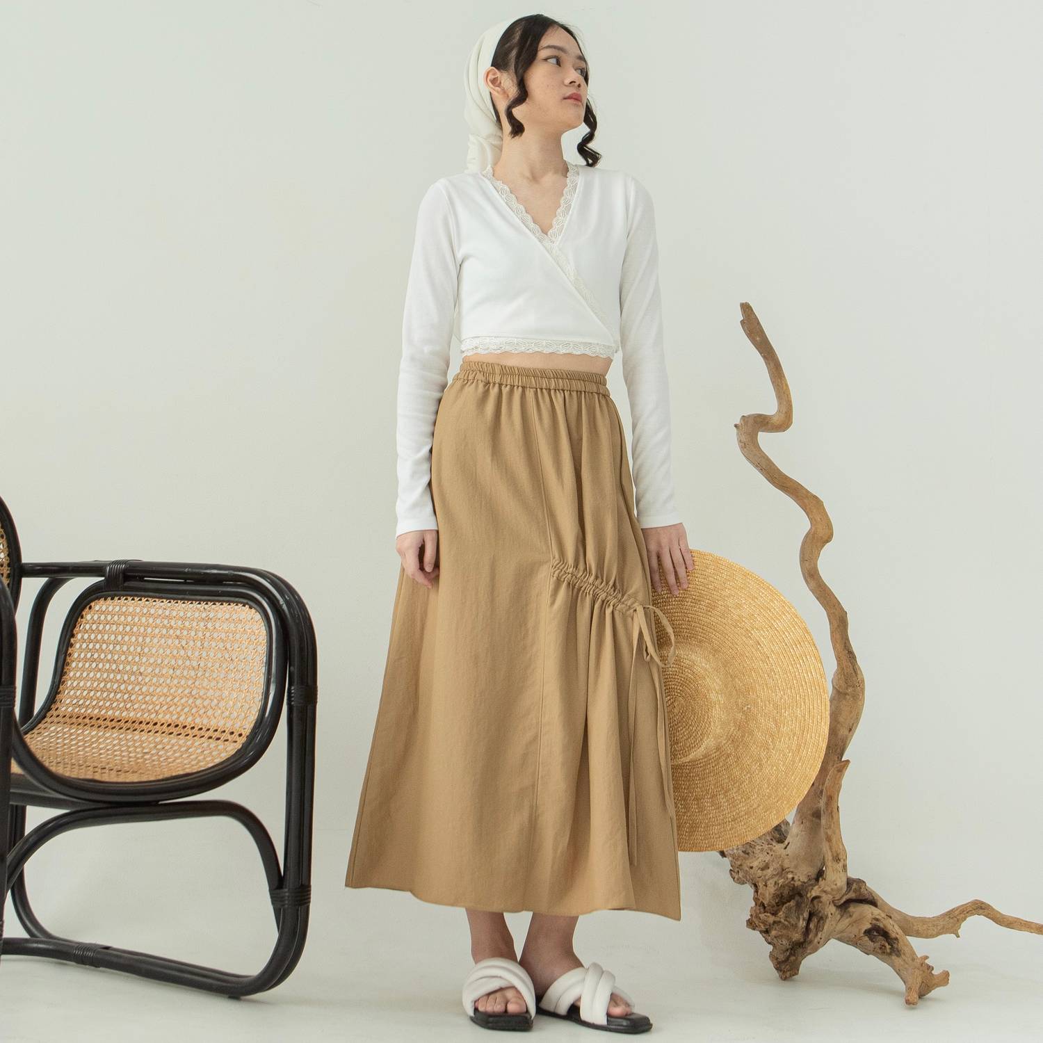 Fwdaily - Jane Skirt | Rok Rampel Layer Tali Polos Midi Maxi Premium Casual | Rok Wanita - korean skirt