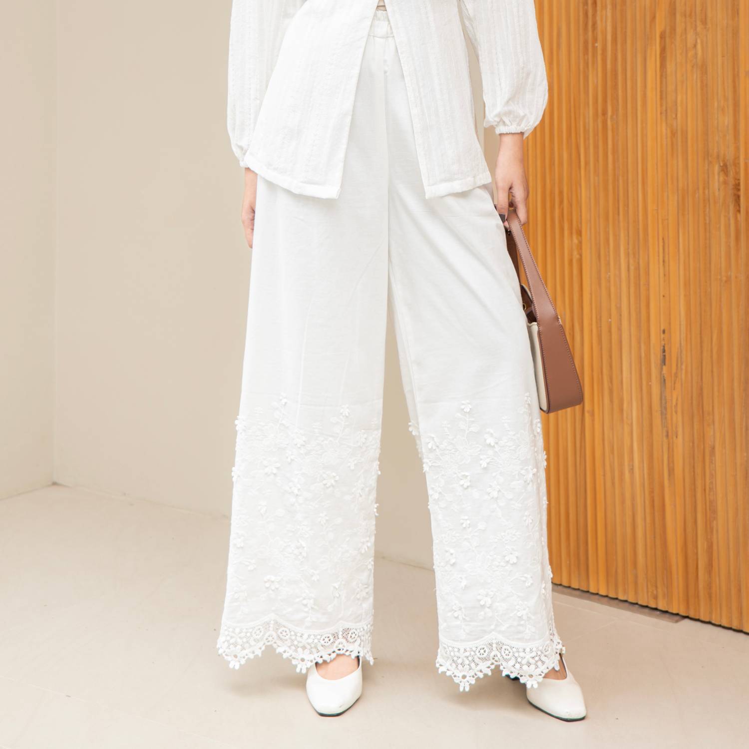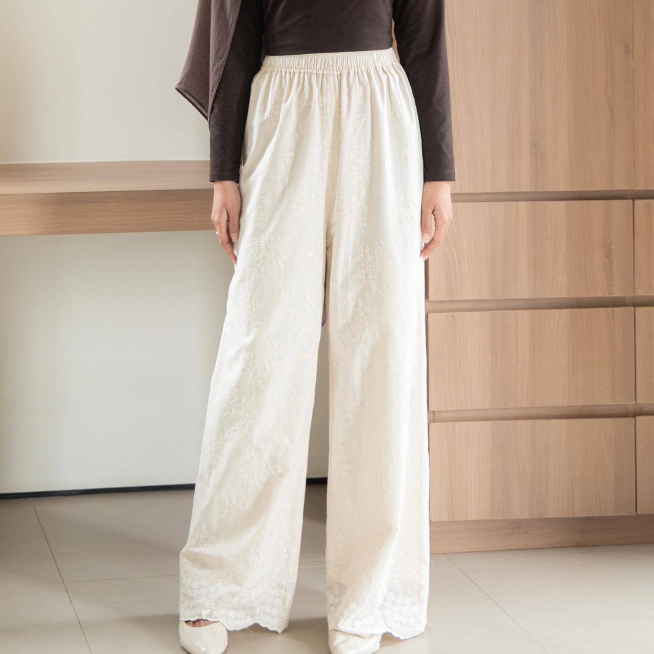 Fwdaily- Lavine Loose Pants (Embroidery Pants- Pants Trouser- Celana Panjang Wanita-Vintage Loose Pants)