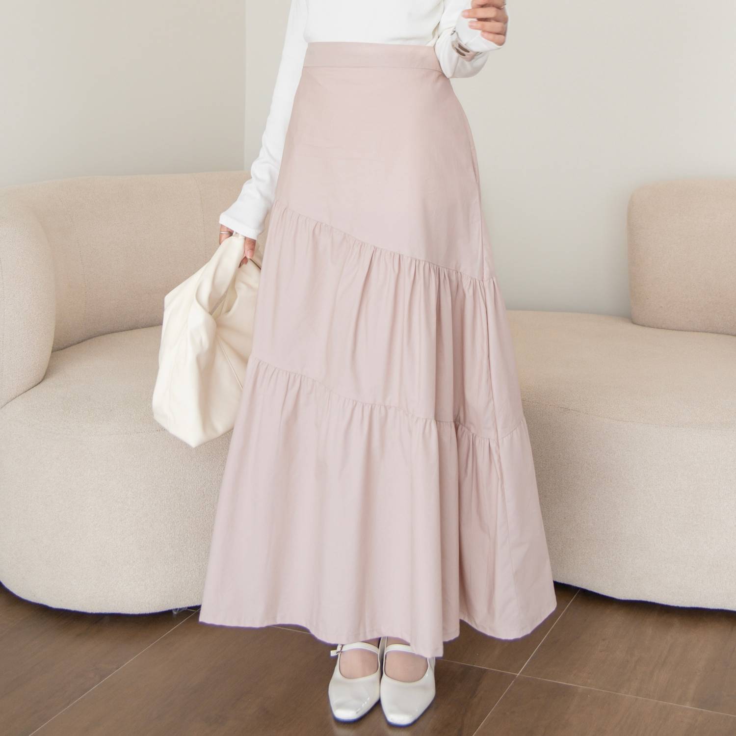 Fwdaily - Odette Skirt | Rok Layer Polos Midi Maxi Premium Casual | Rok Korean Wanita