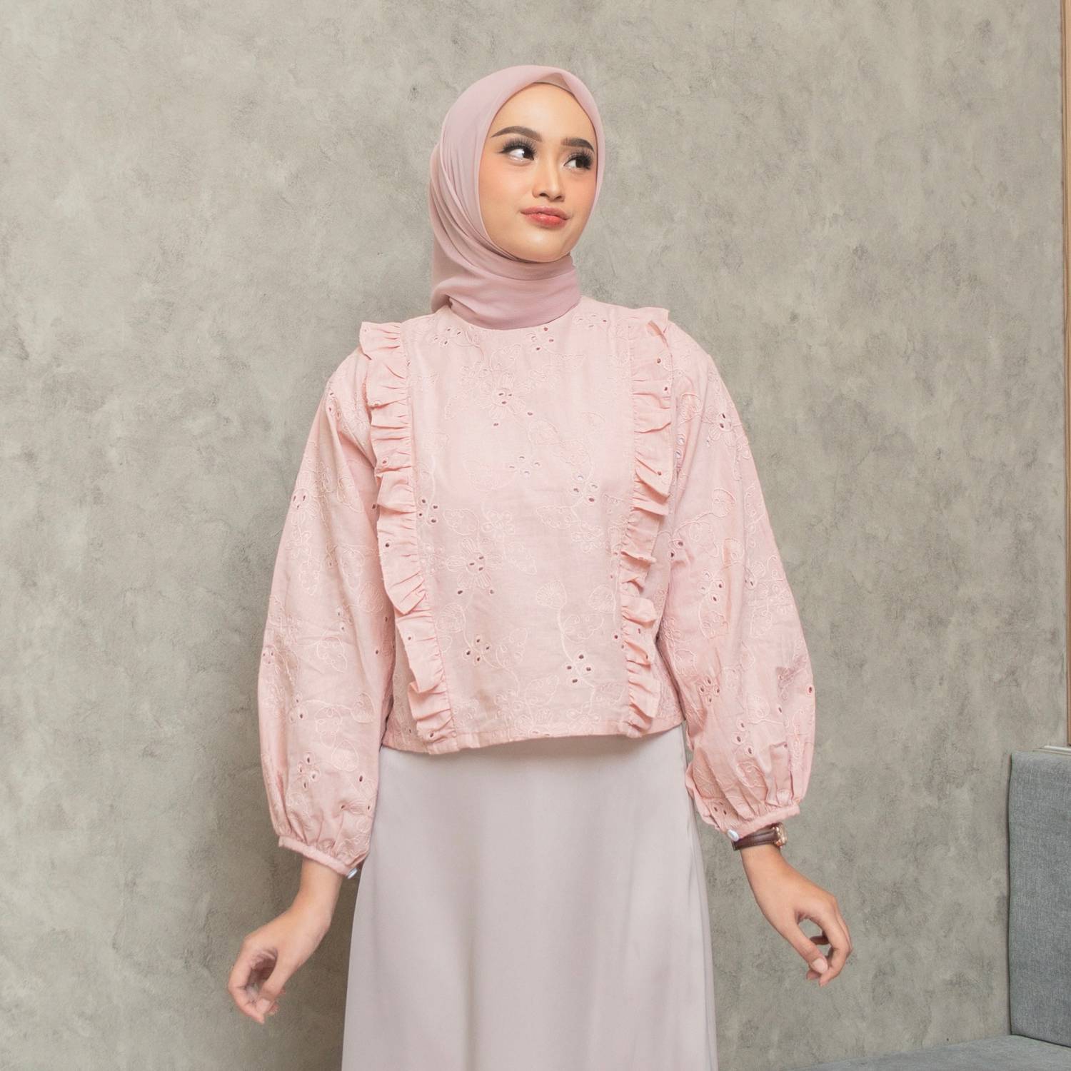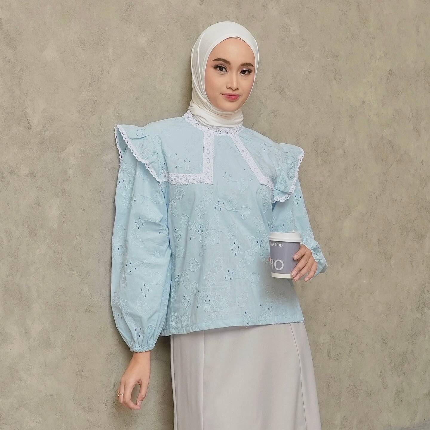 Fwdaily - Thalia Blouse (Raya Collection- Blouse Ruffle Wanita- Embroidery Blouse- Top Wanita Terkini - pakaian wanita terlaris couple