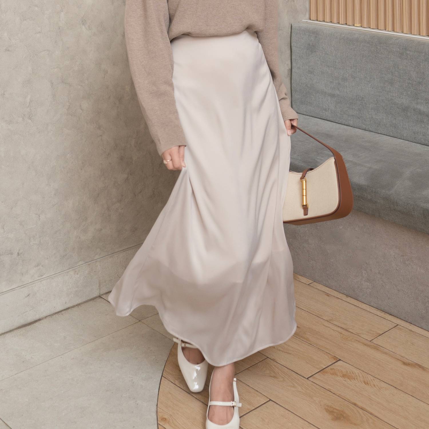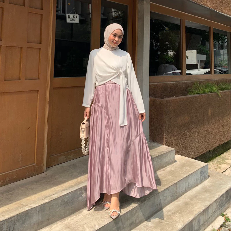 Fwdaily - Viona Skirt ( Rok Silk - Fashion Muslim Midi Maxi - Rok Polos Wanita Terlaris - Rok kondangan) silk skirt terlaris best seller