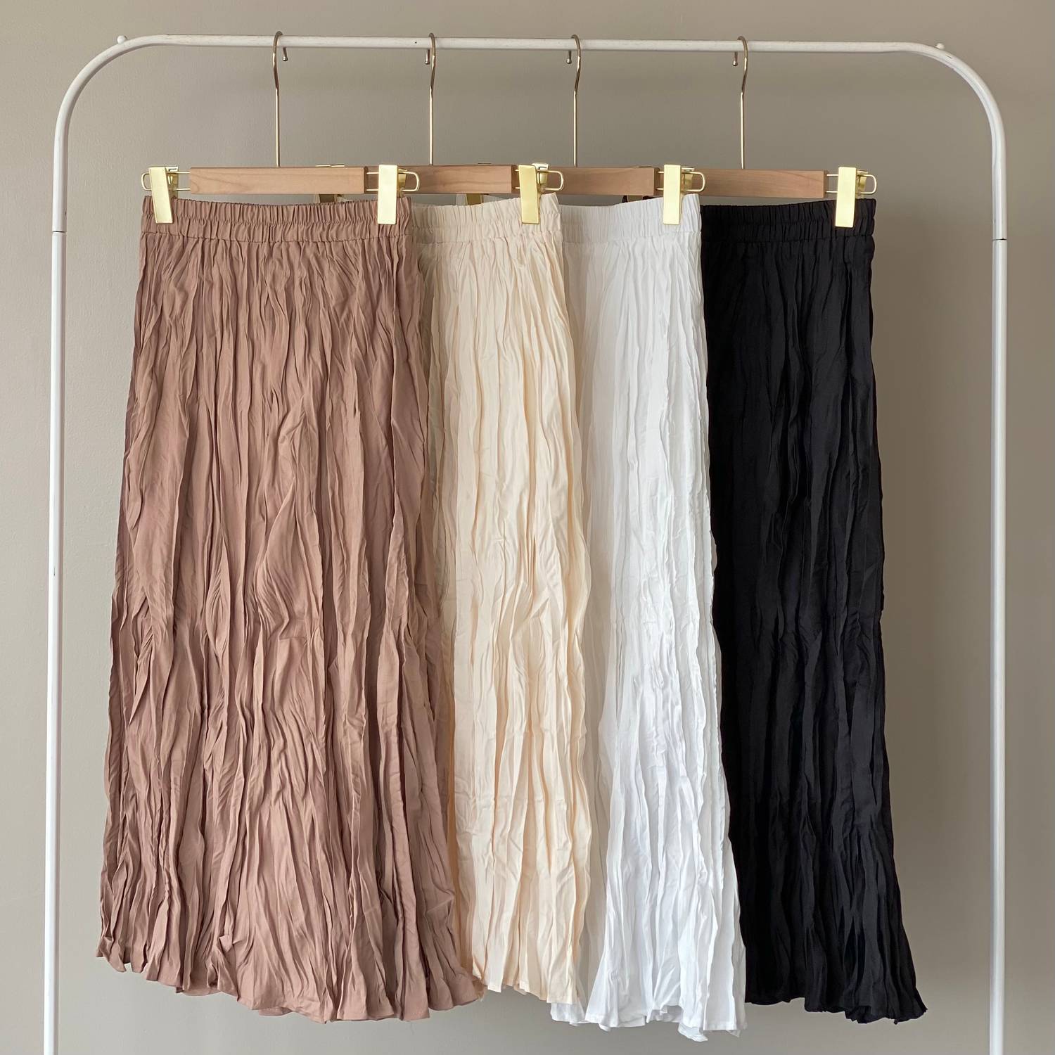 Fwdaily - Pierre Skirt | Rok Serut Polos Midi Maxi Premium Casual | Rok Wanita - Korean Skirt