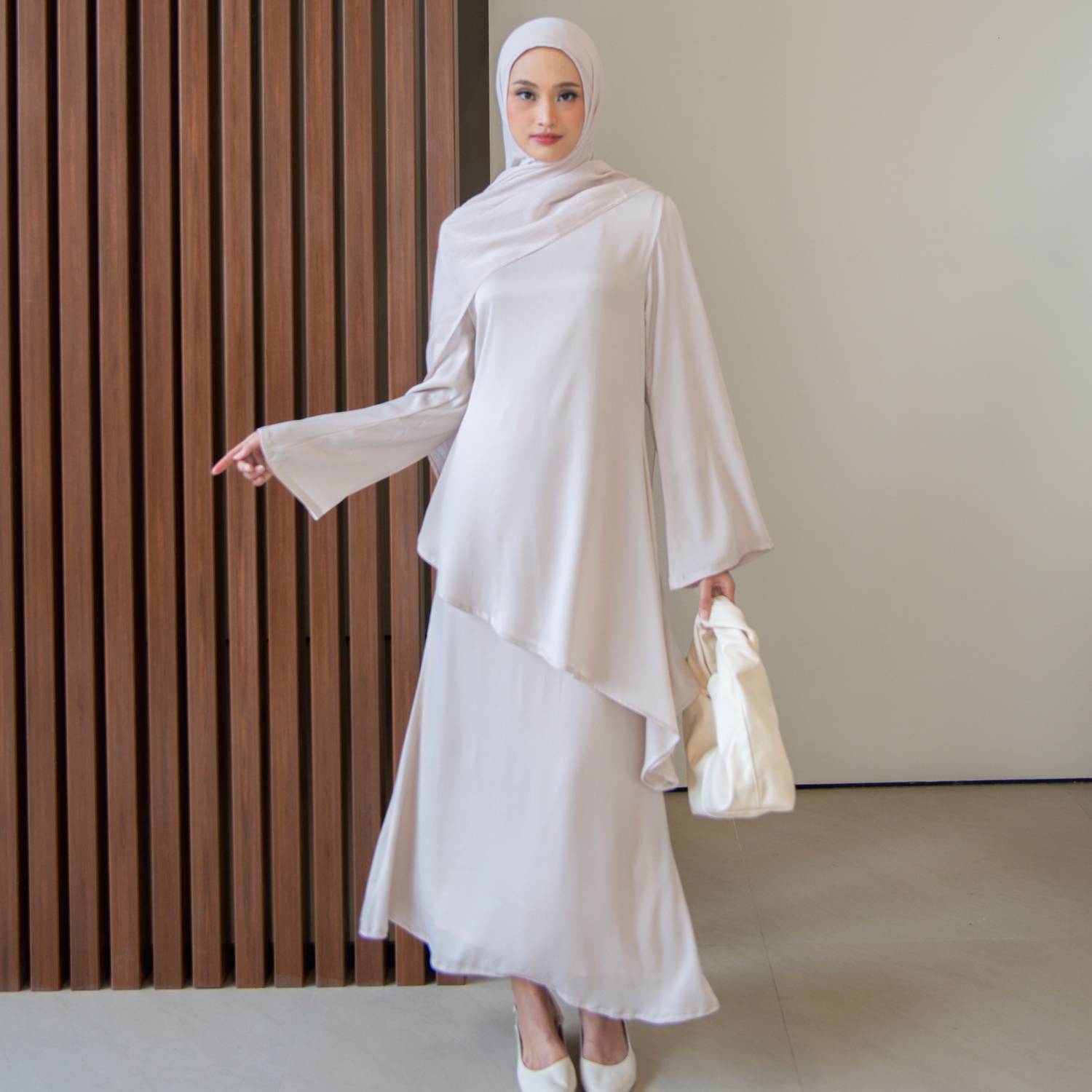 Fwdaily - Nasya Silk (Pakaian Hari Raya Lebaran- Silk Dress- Dress Idul Fitri- Batwing Dress-Dress Abaya Umroh- Dress Polos Wanita