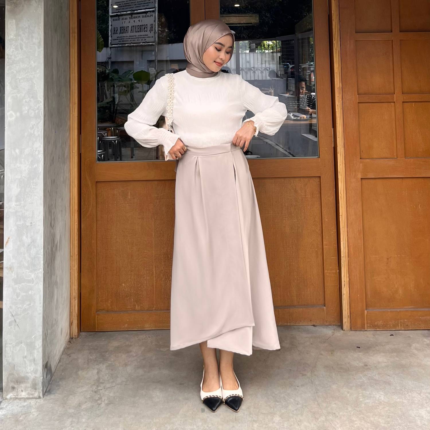 Fwdaily - Leica Skirt | Rok Wrap Polos Midi Maxi Premium Casual | Rok Korean Wanita